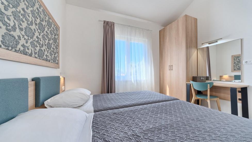107 x Tip B (4+1) Superior **** - 46 m² - dve spalnici z dvema ležiščema v vsaki sobi, raztegljiv kavč v dnevni sobi (primeren za enega otroka do 12 let), telefon, ban. WC, WC, AC v vsaki sobi. V prvem nadstropju z balkonom.