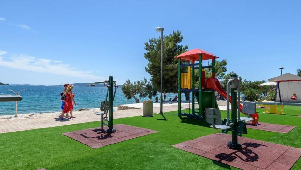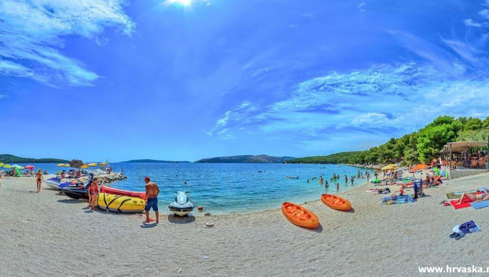 - Dolga plaža je peščena in deloma betonirana. V neposredni bližini apartmajskega naselja so še majhne, naravne, kamnite uvale, kjer je mogoče najti svoj mir, prav tako so uvale za nudiste.- Oddaljenost od plaže: 50 - 250 m