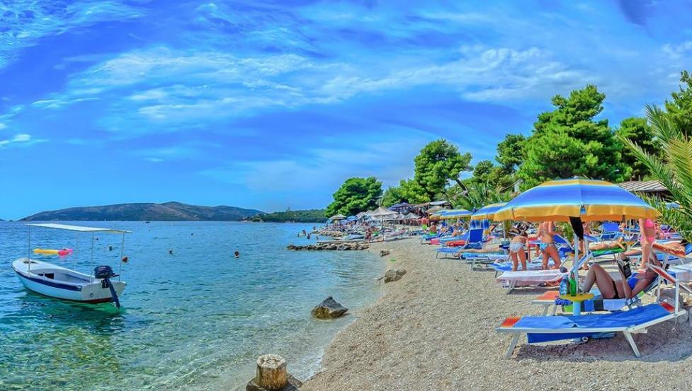 sredi borovega gozdička in tipične mediteranske vegetacije (kadulja, sivka, rožmarin), kar je odlično za počitek. Trogir, Dalmacija, Hrvaška.