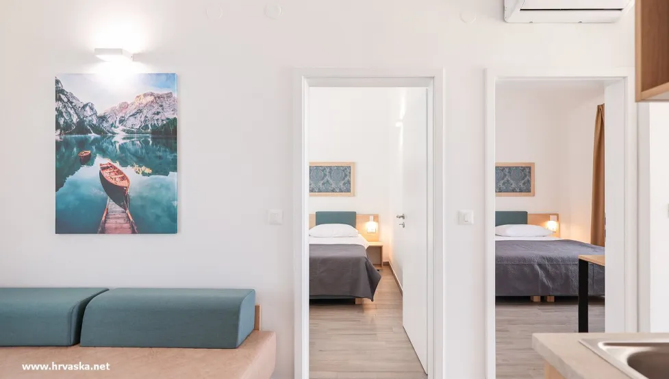 - Apartmaji so oddaljeni 150-300 m do morja.