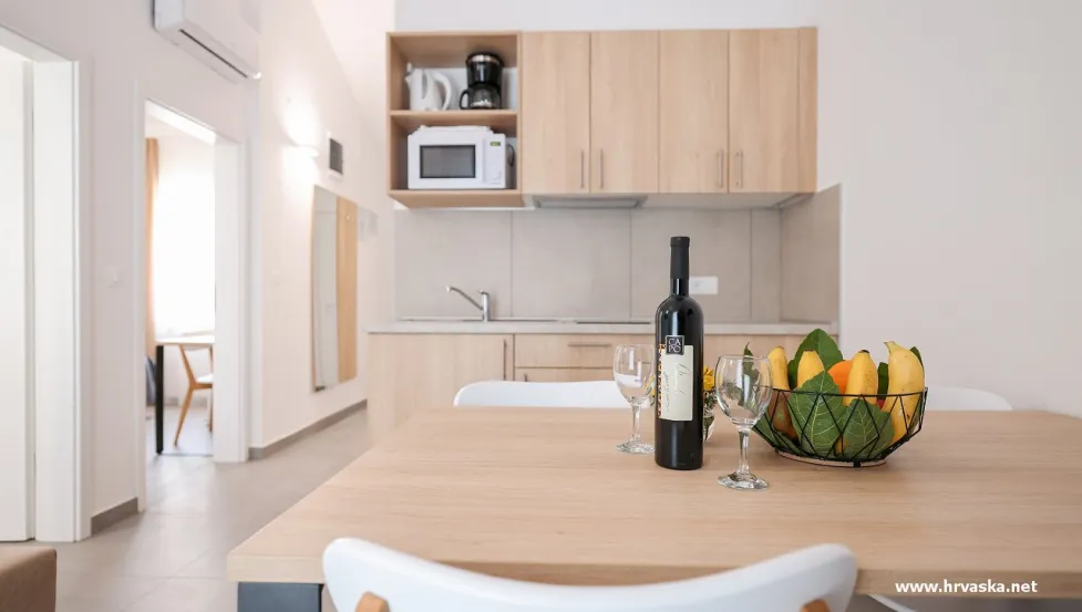 - Apartmaji se nahajajo cca 150-300m od morja.
