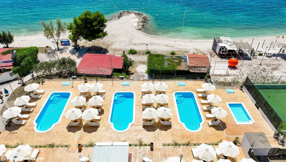 Kompleks vključuje popolnoma novozgrajene bazene (2024), 3 bazene 900 cm x 350 cm in en manjši otroški bazen 470 cm x 250 cm. Ob bazenu je bar s širokim izborom alkoholnih in brezalkoholnih pijač, vključno z različnimi pisanimi koktajli. Prav tako so bazeni ohlajeni v vročih poletnih mesecih in ogrevani izven sezone - temperatura 26 stopinj.