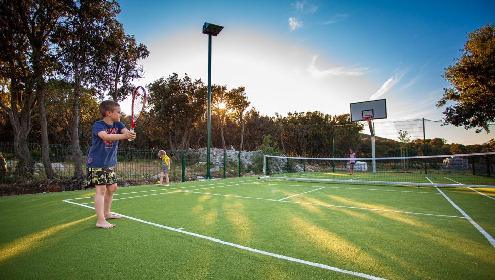 Prostoren in dobro opremljen je idealen za počitnikovanje do 1000 oseb v lastnih šotorih, prikolicah in kamperjih. Naravno je poraščen z mediteranskim rastlinjem, številni kamniti suhi zidovi pa ga delajo enkratnega in pristnega na celem Jadranu. Med sprehodom po kampu srečamo številna zelišča, drevje in rastline, ki rastejo na otoku, kar ustvarja občutek povezanosti z naravo in sprostitev v iskanju novih in nepozabnih motivov, doživetij in vonjev. Posamezna kampirna mesta so skrita pod gostimi stebli črnike, od tam pa vodijo poti naravnost na kar 800 metrov dolgo prodnato plažo, od katere je en del ohranjen v njeni naravni obliki, drugi del pa je urejen in kot nalašč za otroke in njihovo brezskrbno igro. V kampu so dobrodošli hišni ljubimci, zato je manjši del plaže namenjen kopanju psov. Poleg kampa nudimo tudi namestitev v apartmajih in mobilnih hišicah. Bližina tisočletnega Osorja, tradicionalnih Nerezin, njuna bogata kulturna in zgodovinska dediščina in pobočje lepega hriba Osoršćice, ponuja gostom možnost izbire med pobegom v zgodovino in aktivnim raziskovanjem narave.