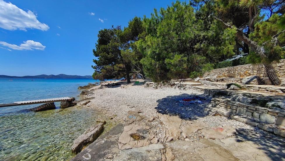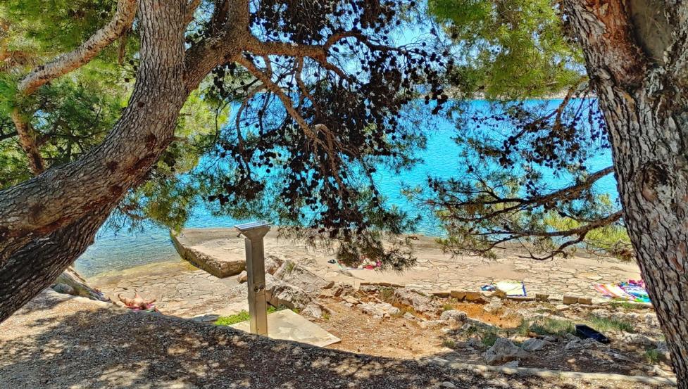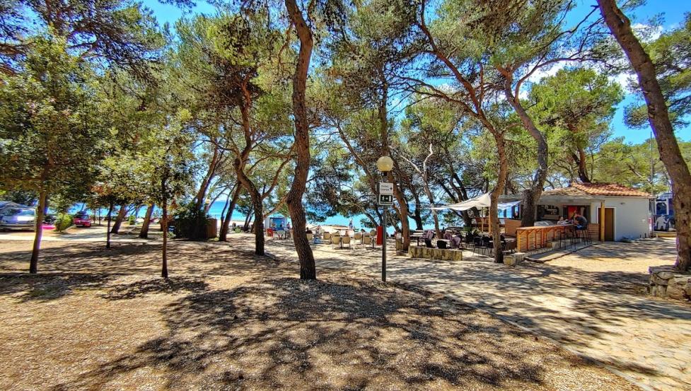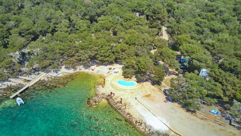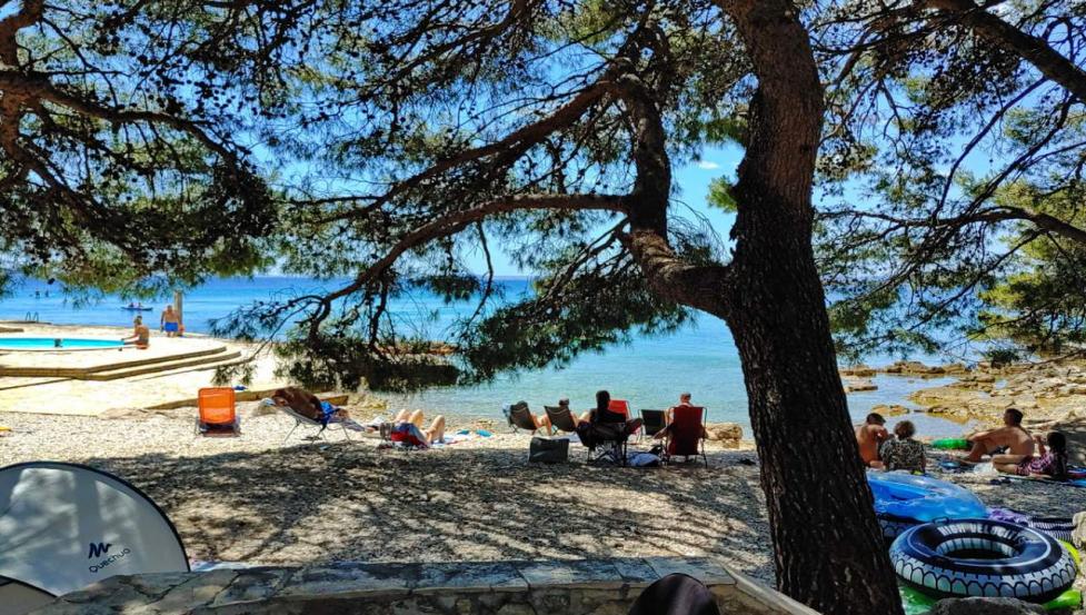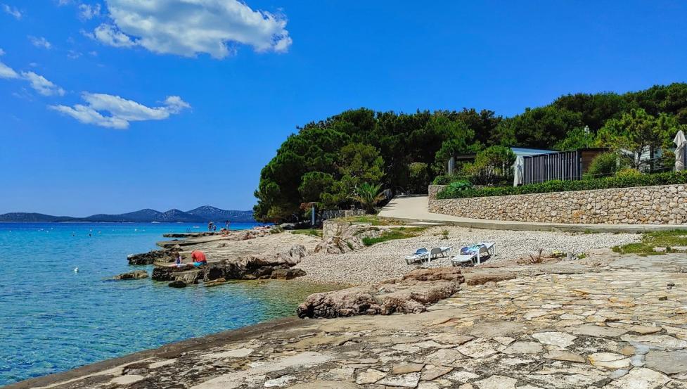 Plaža v kampu je betonirana z manjšim prodnatim zalivom.