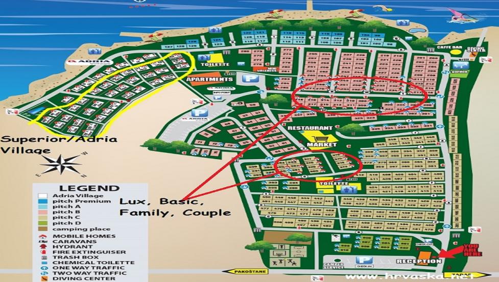 Želje: hišica v senci, hišica na soncu, sosedje z drugo družino, tem bližje morja ... so možne izključno ob doplačilu + 15 % na končno ceno namestitve!