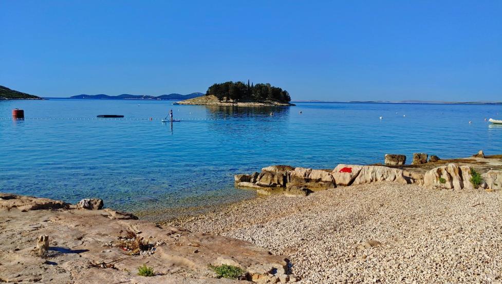 Plaža je oddaljena 50 do 200 m od mobilne hišice.Plaža v kampu je betonirana z manjšim prodnatim zalivom.