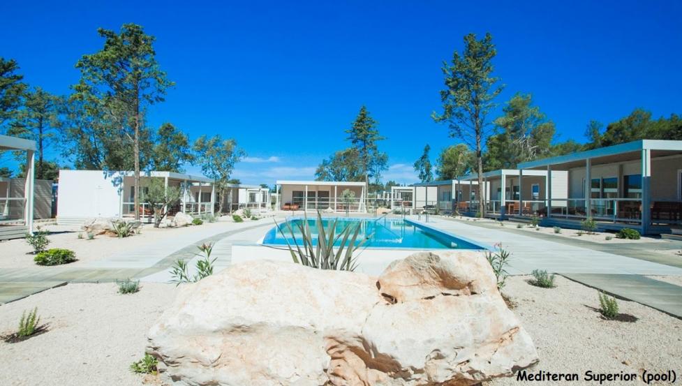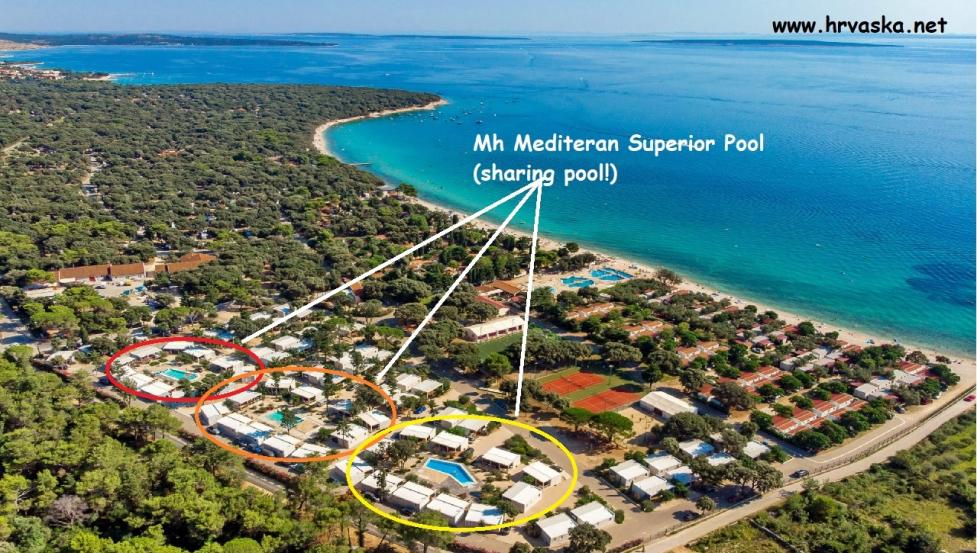 - Hišice ob bazenu v zoni Mediteran. Bazen lahko uporabljate v zoni Mediteran in Adria.