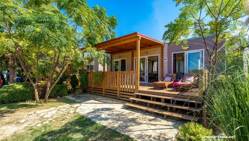 Mobilne hišice v enem izmed najbolj priljubljenih hrvaških kampov, med borovci, poleg ene najlepših plaž na Pagu. Straško, Novalja, Hrvaška